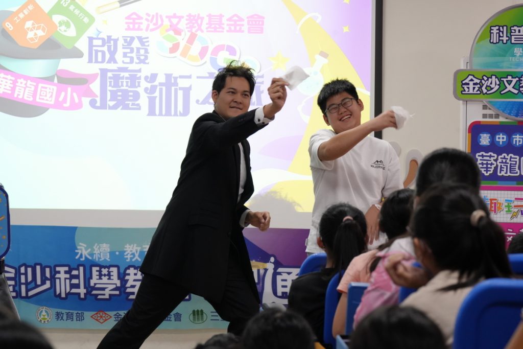 臺中市大甲區華龍國民小學與金沙文教基金會合作,共同舉辦了「科學教育宅配通-啟發 SDGs 的魔術之旅」科學展演活動。華龍國小作為一所積極推動全人教育的學府,深信多元學習體驗對學童發展的重要性。並將科學知識與環境教育、生活科技等議題結合,培養學童解決問題的能力。華龍國小長期致力於資訊教育的推動,曾是臺中市資訊教育課程的前導學校,為此次活動的成功奠定了堅實基礎,確保學童能享有優質的學習機會。